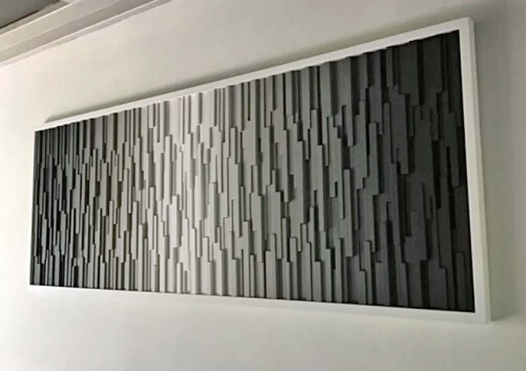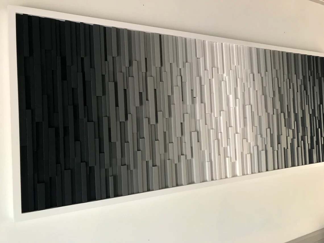 This original design “ Fade to Black” is a super clean and modern wood wall sculpture, and an amazing addition to our Transcending Color Collection.