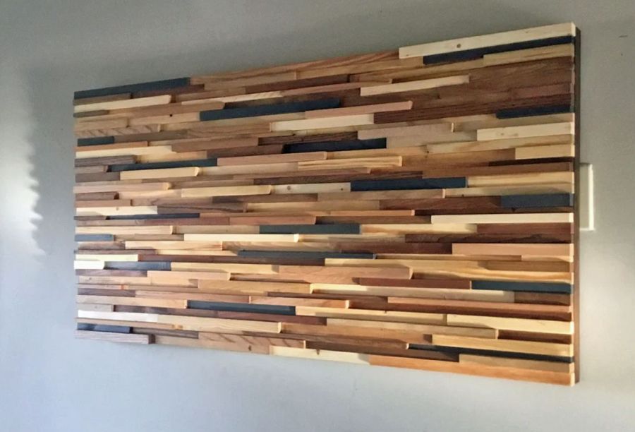 This wood tone sculpture is made from a select variety of reclaimed and up cycled woods and stains. This piece has a nice balance of texture and wood tone color throughout. If this design interest you or you would like something similar, customization of size ,color, and design are welcome, feel free to contact.