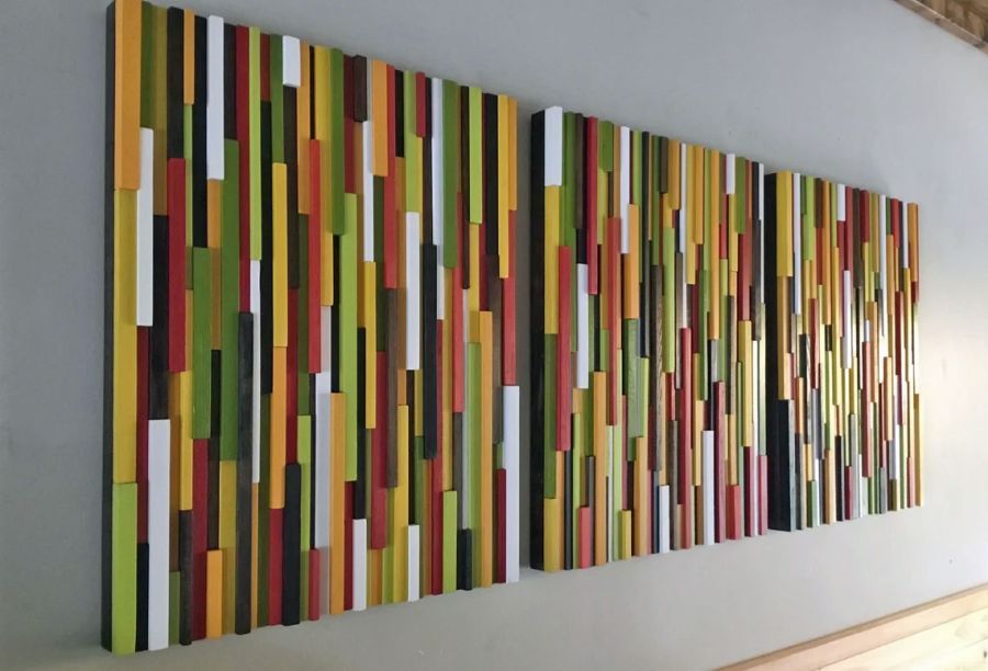 We had a great experience with Michael and Carly around designing this beautiful woodworking 3-piece artwork for our recently remodeled kitchen. We had some specific colors we were after and others we wished to avoid, and this team worked with us to achieve just these ends, all with patience and professionalism. The resulting pieces look superb, and immensely attractive in their new space. Thanks to Michael and Carly.