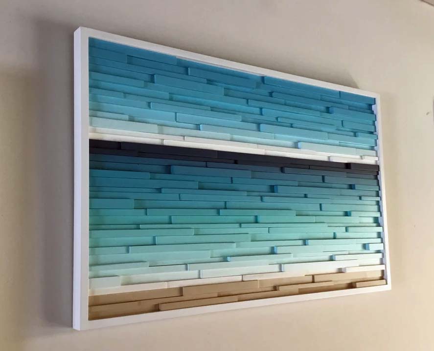 Transcending ColorsWood wall sculpture- coastal wood art- reclaimed wood- beach decor- corporate art- modern wall art, Fresh and vibrant ocean landscape/seascape